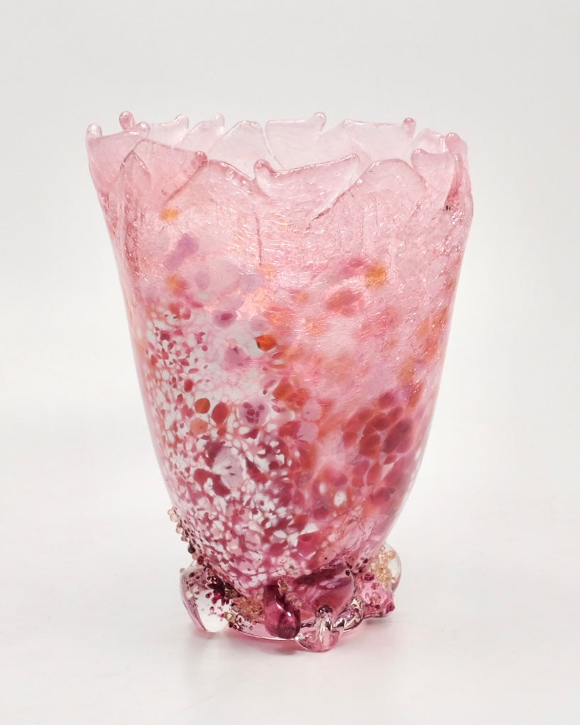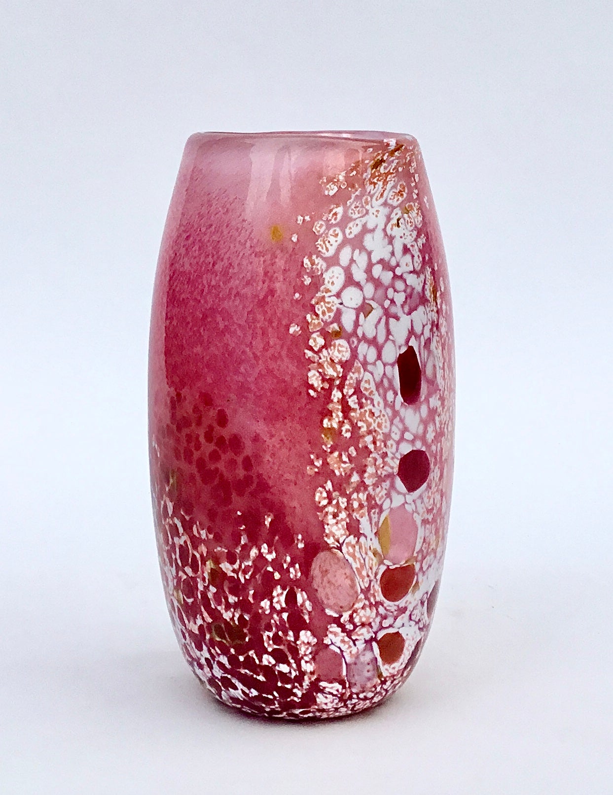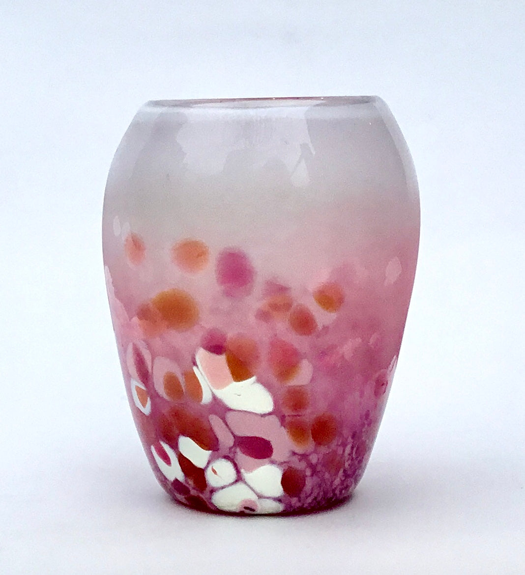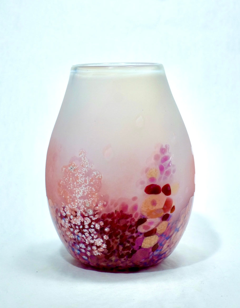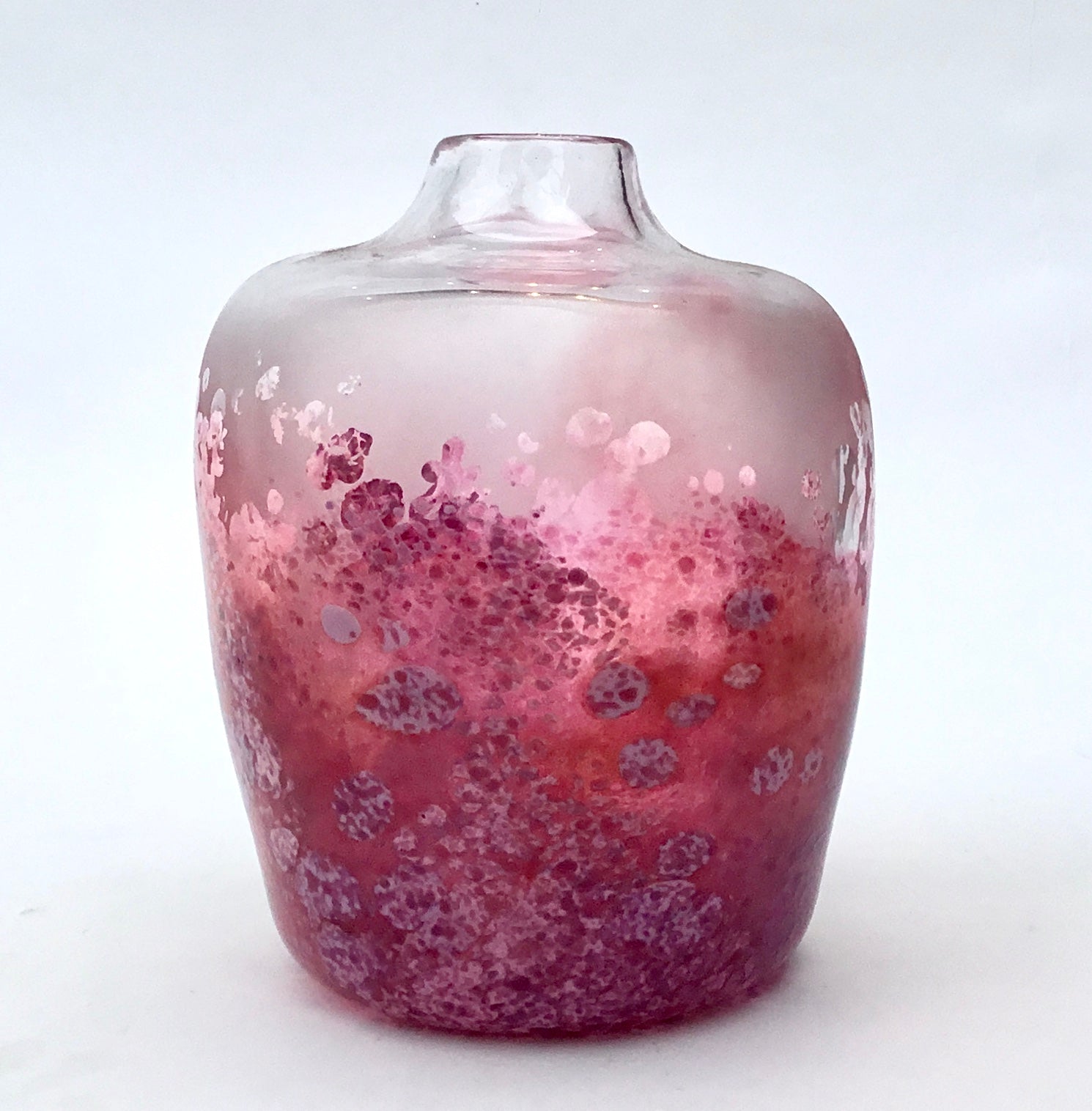 Bright colours and with spring in mind, these Cherry Blossom vessels are a reminder that sunny days are ahead. Based off a past line of works by Benjamin Kikkert, this vase shows the evolution of the colour work in a refined, well laiout palette for your personal appeal. ~ VSG