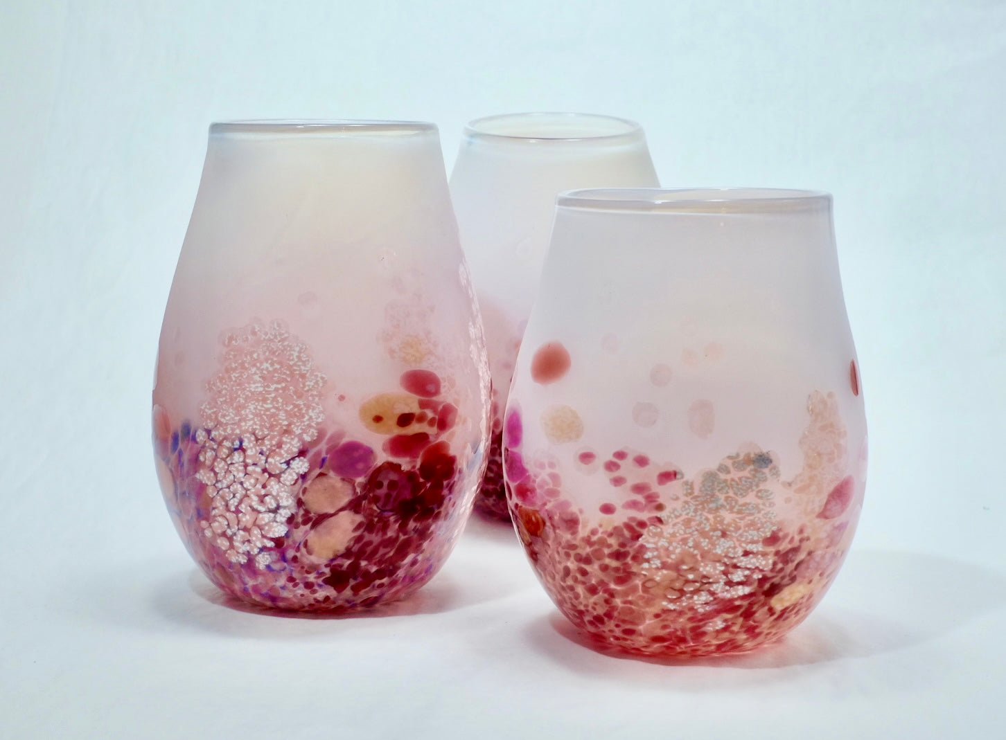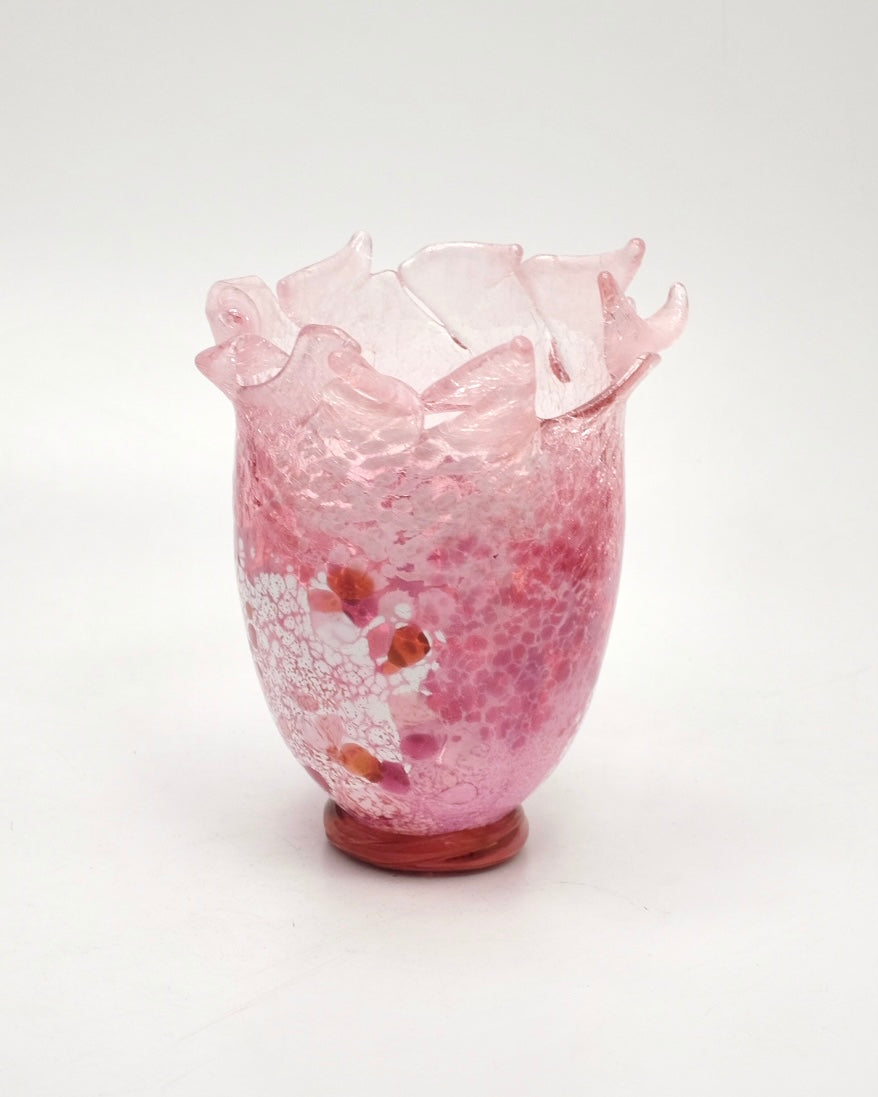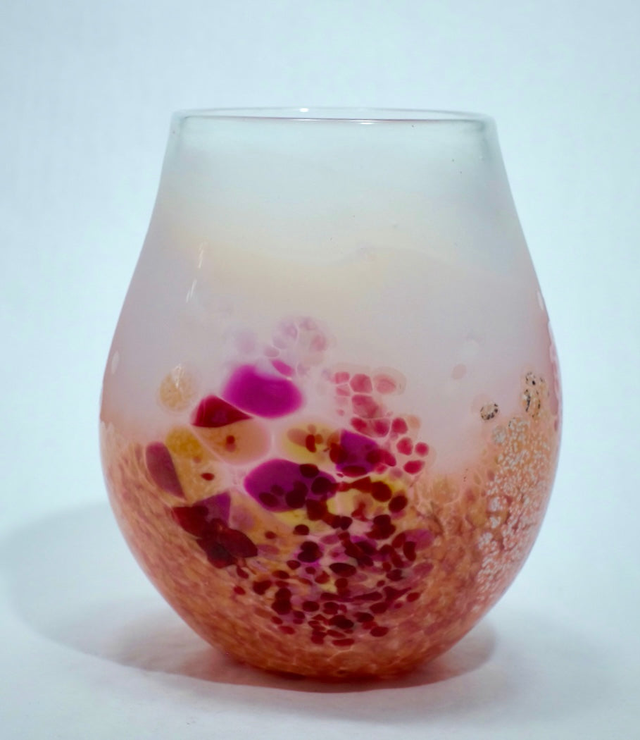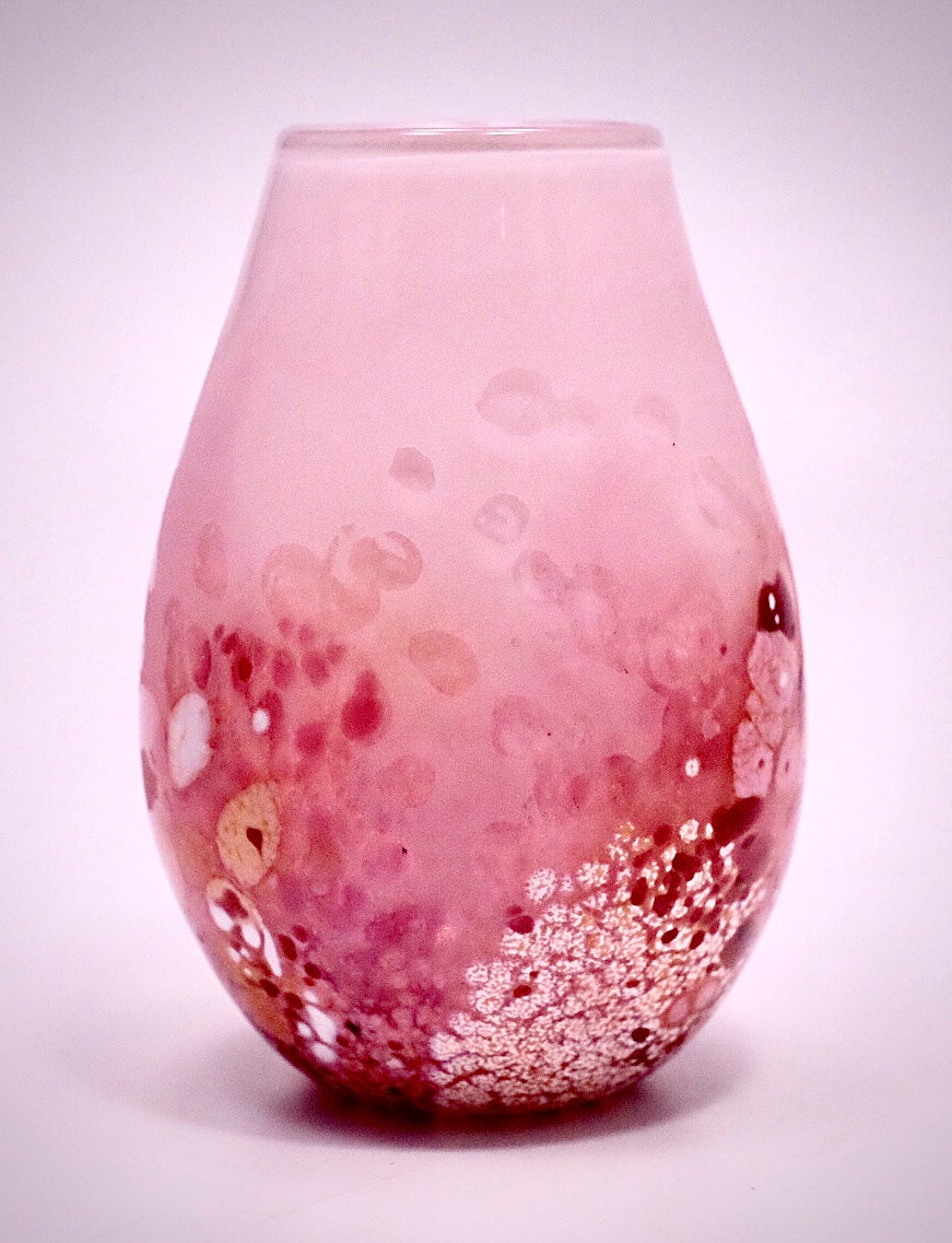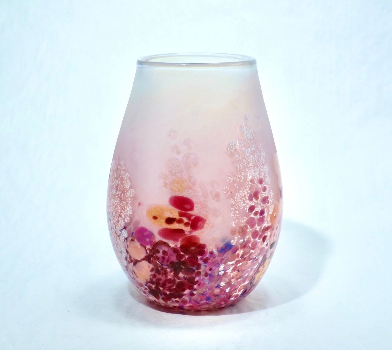 Bright colours and with spring in mind, these Cherry Blossom vessels are a reminder that sunny days are ahead. Based off a past line of works by Benjamin Kikkert, this vase shows the evolution of the colour work in a refined, well laiout palette for your personal appeal. ~ VSG