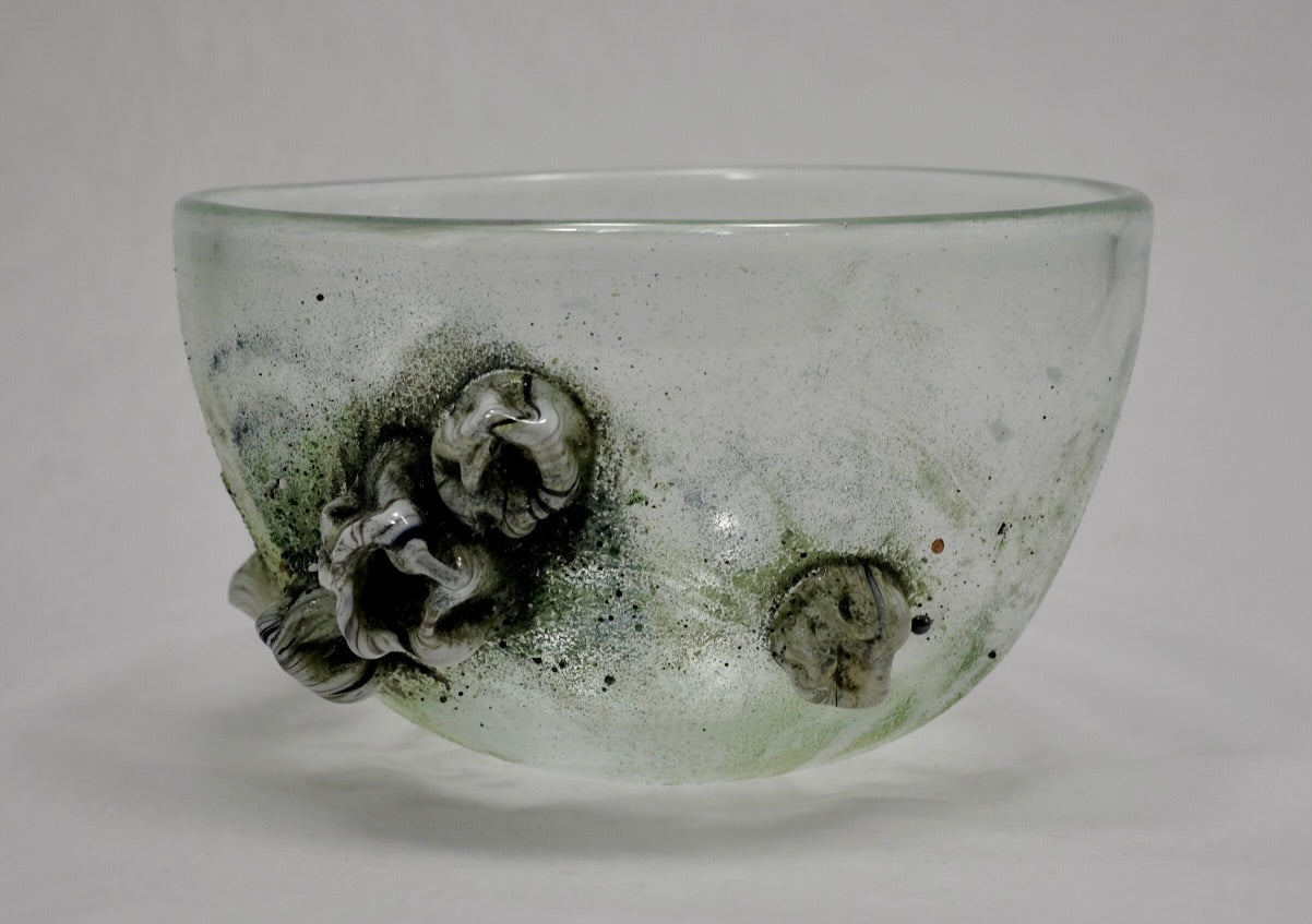 Handmade bowls by Benjamin Kikkert with hand attached glass barnacles! All made in studio, right here on Granville Island, BC.