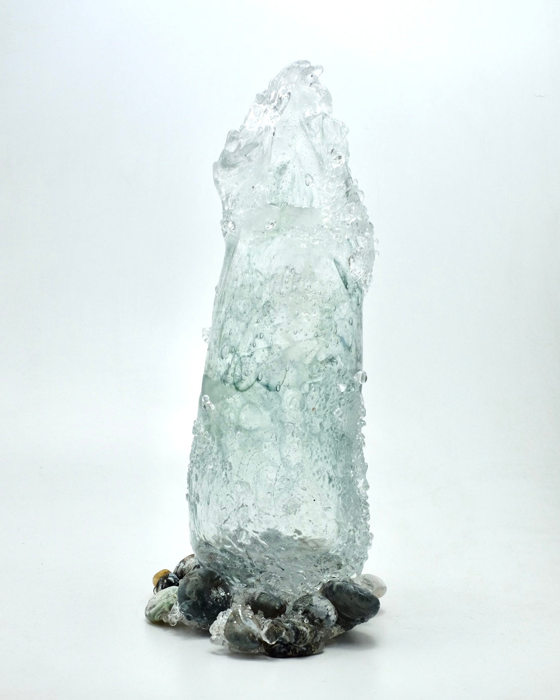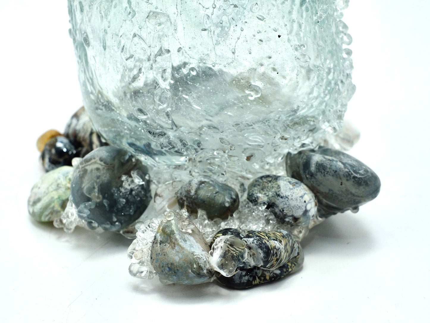 Handblown by VSG owner Benjamin Kikkert, the glacier vessels feature striking motives of ice water and glass ‘stones’. This piece can be used as a floral vessel in addition to being a unique sculptural form.